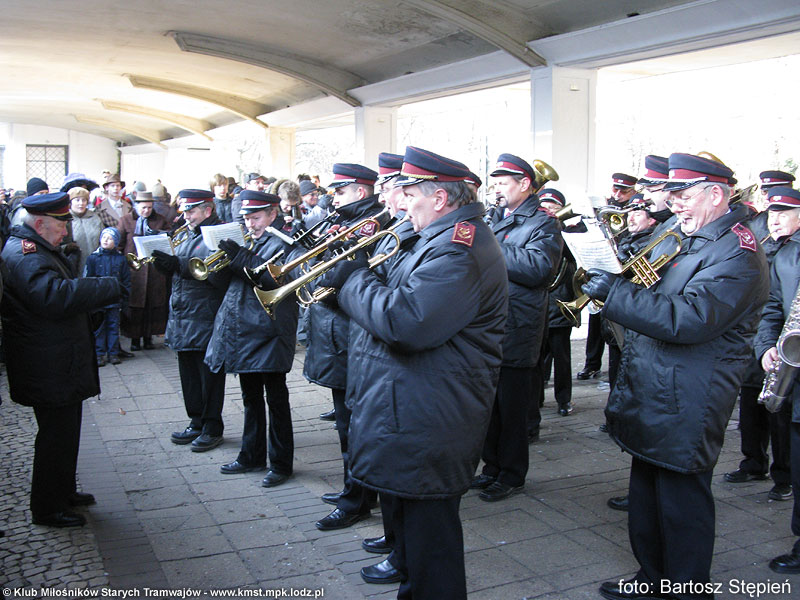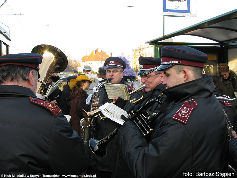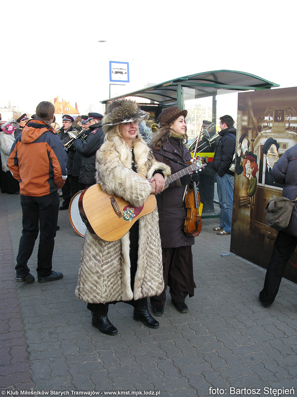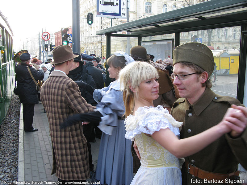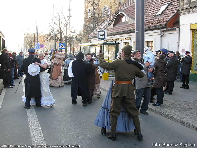 Kiedy wszystkie wagony wymanewrowały i ustawiły się w odpowiedniej kolejności, orkiestra MPK-Łódź przywitała wszystkich zebranych gromkim marszem. Następnie pod zadaszeniem wiaty pojawiły się całe rzesze artystów: aktorzy Studia Teatralnego „Słup”, Teatru „Na Wspólnej” i członkowie Zespołu Muzycznego „Okaryna” pod kierownictwem Marcela Szytenchelma. Wszyscy byli ubrani w stroje z epoki, zatem od falbanek, koronek i meloników zawrócić się mogło w głowie. Po pierwszych występach nadszedł czas na odjazd. Orkiestra nie chciała jednak zasiąść na przygotowanej dla nich platformie – obawiali się o to, ze instrumenty mogą pozamarzać.