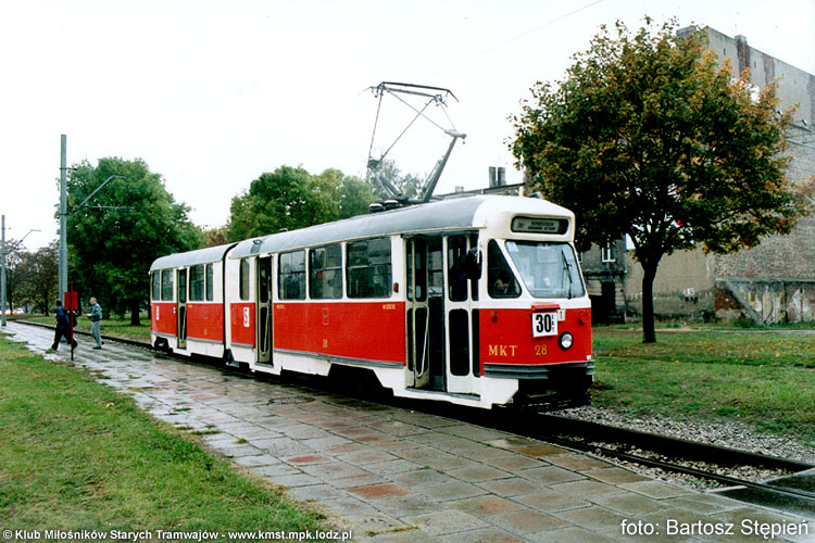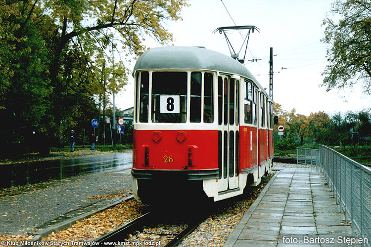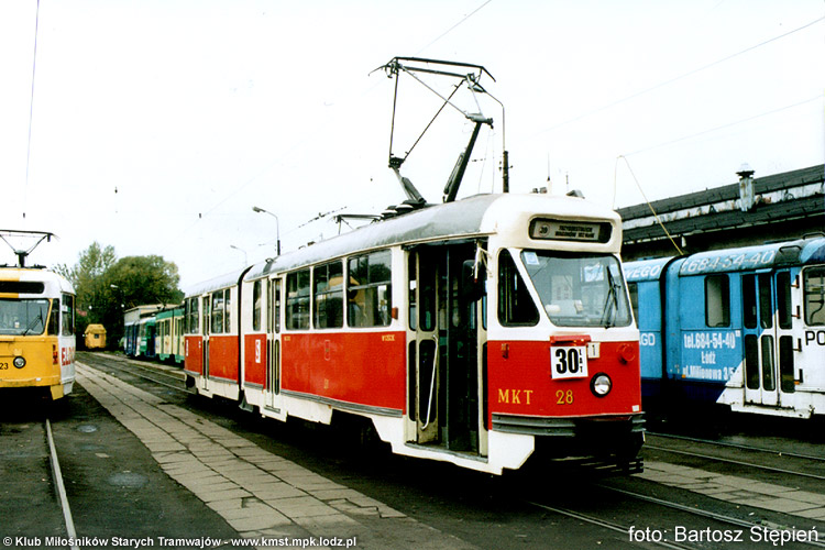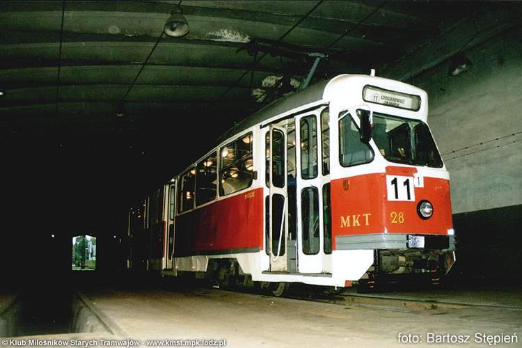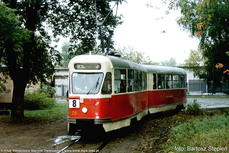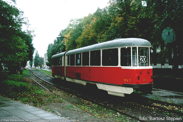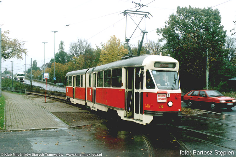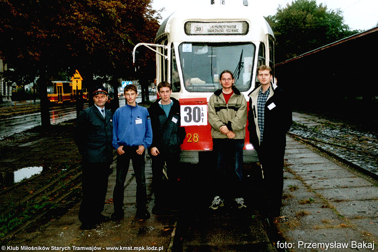 Właśnie w październiku 2002 roku mija 30 lat odkąd wagony typu 102NaW przemierzają łódzkie i podłódzkie torowiska. Te wąskotorowe odpowiedniki modelu 102Na można było spotkać jedynie w naszym mieście. W latach 1972-1973 chorzowski Konstal wyprodukował 20 egzemplarzy. Poza krótkim okresem w początkach eksploatacji do 1993 roku wszystkie „stodwójki” stacjonowały w zajezdni Chocianowice. Po pozbyciu się przez MPK wagonów przegubowych dwie sztuki 102NaW przeszły do spółki MKT, a pozostałe trafiły na złom. Złomowanie przebiegało jednak sukcesywnie i ostatni skreślony wagon (nr tab. 3877) ostatecznie pocięto dopiero w 2000 roku. Dziś sprawy jest już tylko jeden 102NaW o numerze taborowym 28 (ex 3890 ex 890). Prezes spółki z siedzibą na Helenówku, Pan Stanisław Galia, pozytywnie odniósł się do idei zorganizowania wycieczki, więc mogliśmy rozpocząć przygotowania. Przez lata, oprócz różnic w rozruchu, wagon nr 28 zatracił większość szczegółów pozwalających na pierwszy rzut oka stwierdzić, że to 102NaW, a nie „osiemsettrójka”. W celu odtworzenia dawnego wyglądu postaraliśmy się m.in. o gniazda wielokrotnego sterowania. Szczęśliwie udało się je odnaleźć w zajezdni Chocianowice. Oprócz montażu gniazd w warsztatach przełożono drugie i trzecie drzwi czteroskrzydłowe z wagonu nr 30, pantograf OTK-2 zamieniono standardowym OTK-1, a z odbojów zdjęto szpecące blachy. Wewnątrz zainstalowano podwieszane pod sufit tablice informacyjne, które zachowały się jeszcze w odstawionym wagonie nr 40. Co najważniejsze „stodwójka” otrzymała historyczne malowanie (czerwono-kremowe), herby Łodzi i starą czcionkę numerów taborowych. Zadbaliśmy nawet o naklejki z napisem „Samoobsługa”, które wykonał Janek Szulew. Z przyczyn oczywistych zamiast napisu „MPK”, na burtach pojawił się skrót „MKT”. Ten, jak i inne szablony wykonał Andrzej Bakaj. Wszystkie prace nadzorował kierownik Ryszard Błoch.