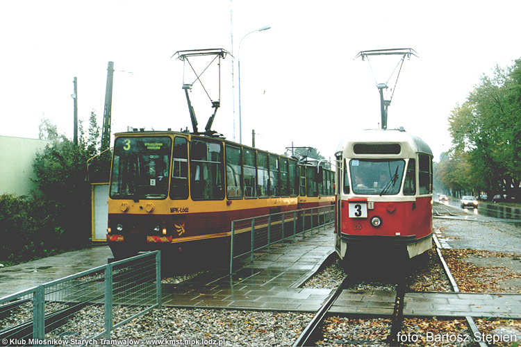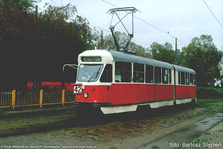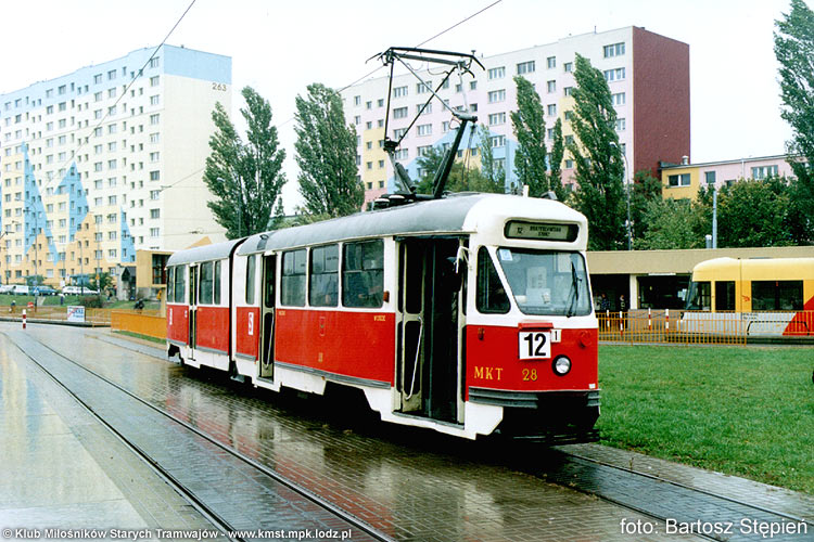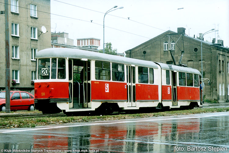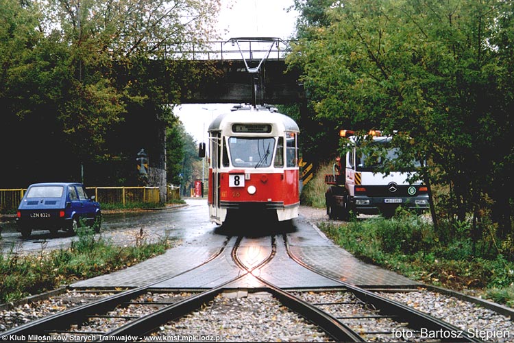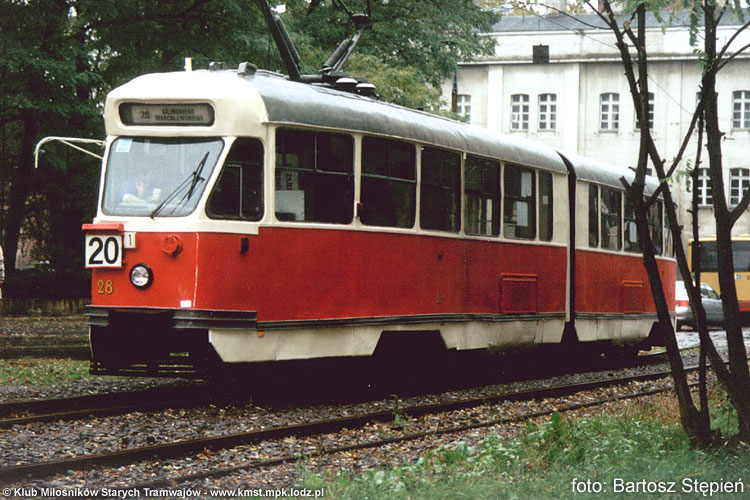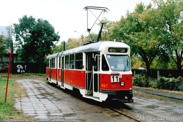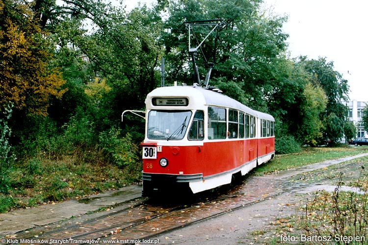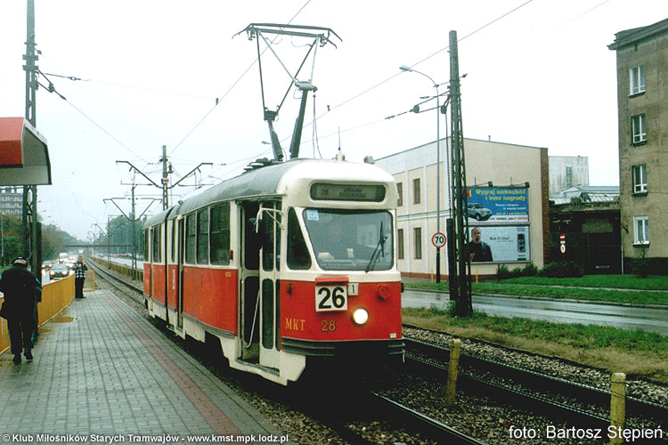 Właśnie w październiku 2002 roku mija 30 lat odkąd wagony typu 102NaW przemierzają łódzkie i podłódzkie torowiska. Te wąskotorowe odpowiedniki modelu 102Na można było spotkać jedynie w naszym mieście. W latach 1972-1973 chorzowski Konstal wyprodukował 20 egzemplarzy. Poza krótkim okresem w początkach eksploatacji do 1993 roku wszystkie „stodwójki” stacjonowały w zajezdni Chocianowice. Po pozbyciu się przez MPK wagonów przegubowych dwie sztuki 102NaW przeszły do spółki MKT, a pozostałe trafiły na złom. Złomowanie przebiegało jednak sukcesywnie i ostatni skreślony wagon (nr tab. 3877) ostatecznie pocięto dopiero w 2000 roku. Dziś sprawy jest już tylko jeden 102NaW o numerze taborowym 28 (ex 3890 ex 890). Prezes spółki z siedzibą na Helenówku, Pan Stanisław Galia, pozytywnie odniósł się do idei zorganizowania wycieczki, więc mogliśmy rozpocząć przygotowania. Przez lata, oprócz różnic w rozruchu, wagon nr 28 zatracił większość szczegółów pozwalających na pierwszy rzut oka stwierdzić, że to 102NaW, a nie „osiemsettrójka”. W celu odtworzenia dawnego wyglądu postaraliśmy się m.in. o gniazda wielokrotnego sterowania. Szczęśliwie udało się je odnaleźć w zajezdni Chocianowice. Oprócz montażu gniazd w warsztatach przełożono drugie i trzecie drzwi czteroskrzydłowe z wagonu nr 30, pantograf OTK-2 zamieniono standardowym OTK-1, a z odbojów zdjęto szpecące blachy. Wewnątrz zainstalowano podwieszane pod sufit tablice informacyjne, które zachowały się jeszcze w odstawionym wagonie nr 40. Co najważniejsze „stodwójka” otrzymała historyczne malowanie (czerwono-kremowe), herby Łodzi i starą czcionkę numerów taborowych. Zadbaliśmy nawet o naklejki z napisem „Samoobsługa”, które wykonał Janek Szulew. Z przyczyn oczywistych zamiast napisu „MPK”, na burtach pojawił się skrót „MKT”. Ten, jak i inne szablony wykonał Andrzej Bakaj. Wszystkie prace nadzorował kierownik Ryszard Błoch.
