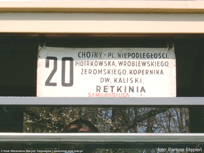 al. Wyszyńskiego, Bratysławska, Karolewska, al. Bandurskiego, al. Włókniarzy, Kopernika, Gdańska, Zielona, Narutowicza – RADIOSTACJA (to pierwsza „retkińska” relacja linii 19 z 1955 roku)