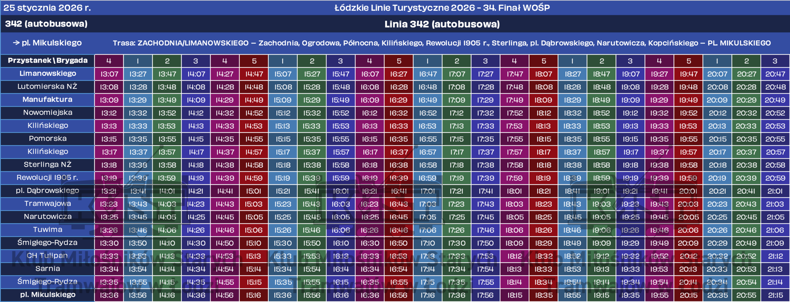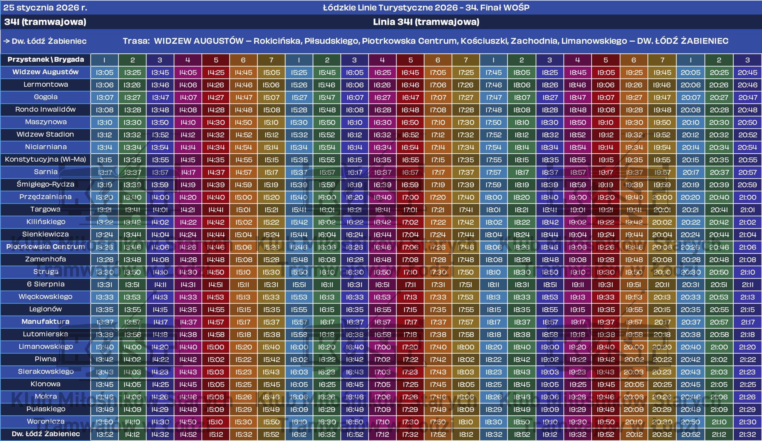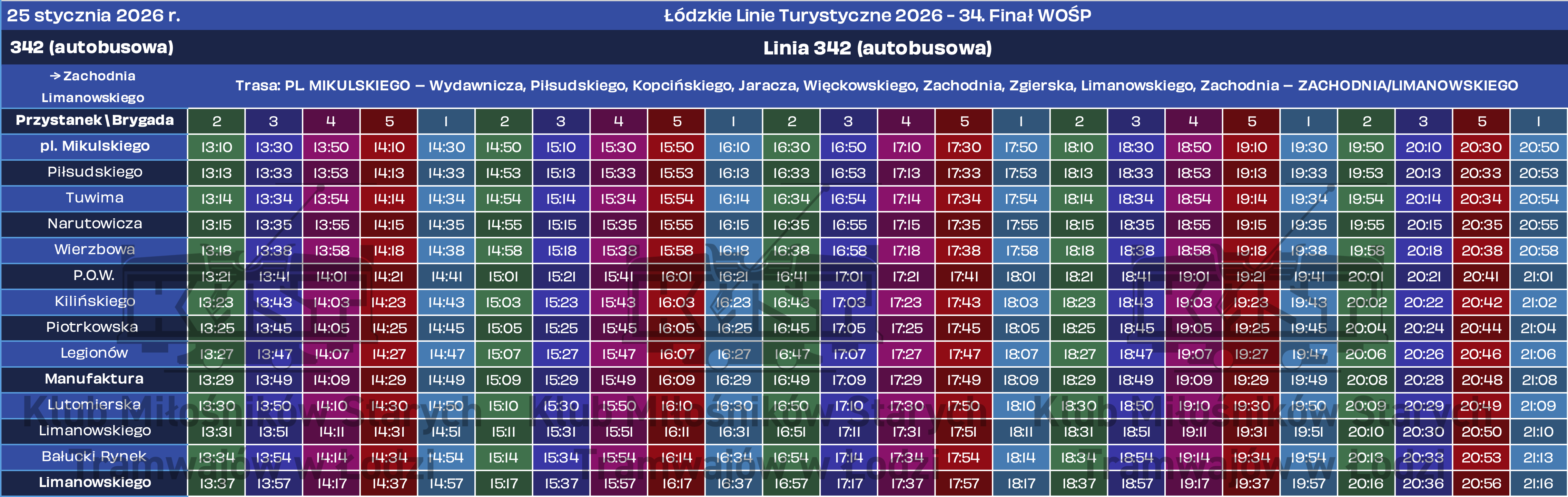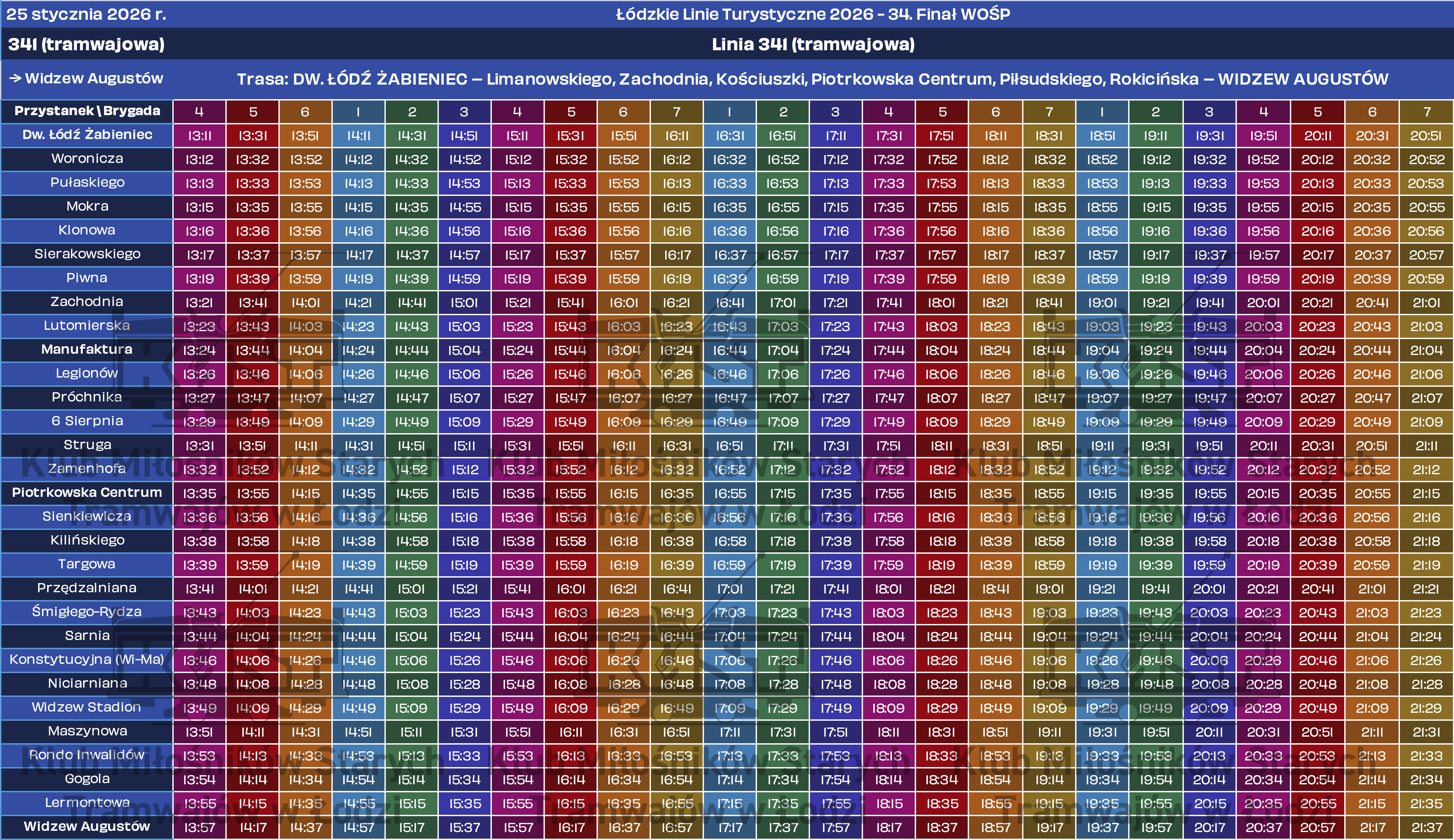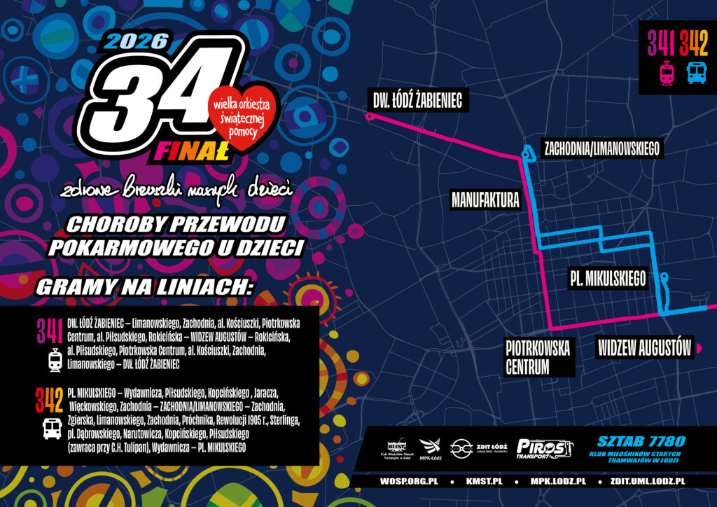 Tradycją już stało się kursowanie historycznych pojazdów podczas organizowanego w styczniu Finału Wielkiej Orkiestry Świątecznej Pomocy. Rok 2026 nie będzie odmianą – w niedzielę, 25 stycznia, kursować będą dwie linie specjalne: tramwajowa 341 oraz autobusowa 342. Ich numeracja nawiązuje do faktu, że w tym roku Finał WOŚP organizowany jest po raz 34. Wspomniane linie rozpoczną kursy około godziny 13 i będą kursować aż do zjazdów do zajezdni około 21.