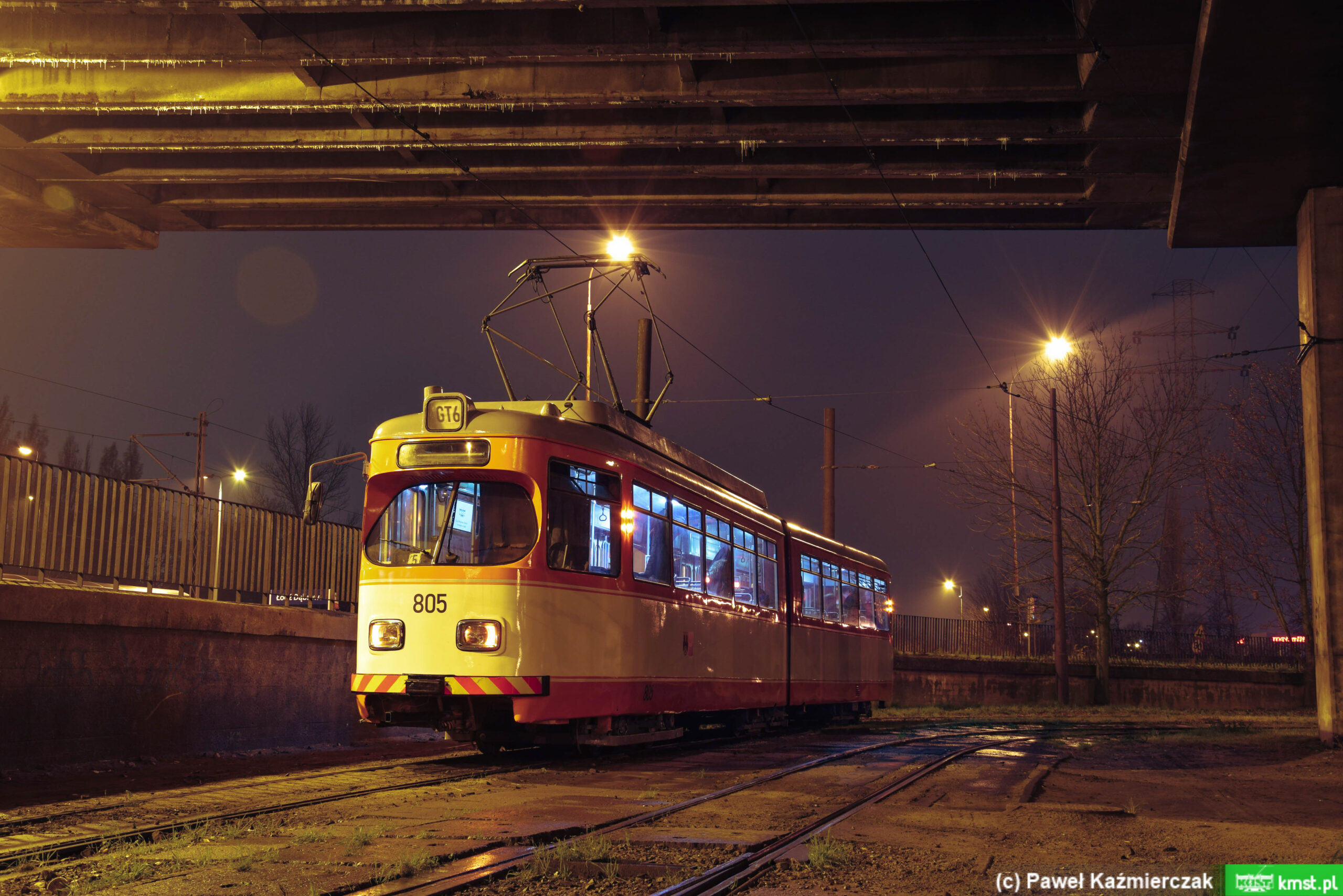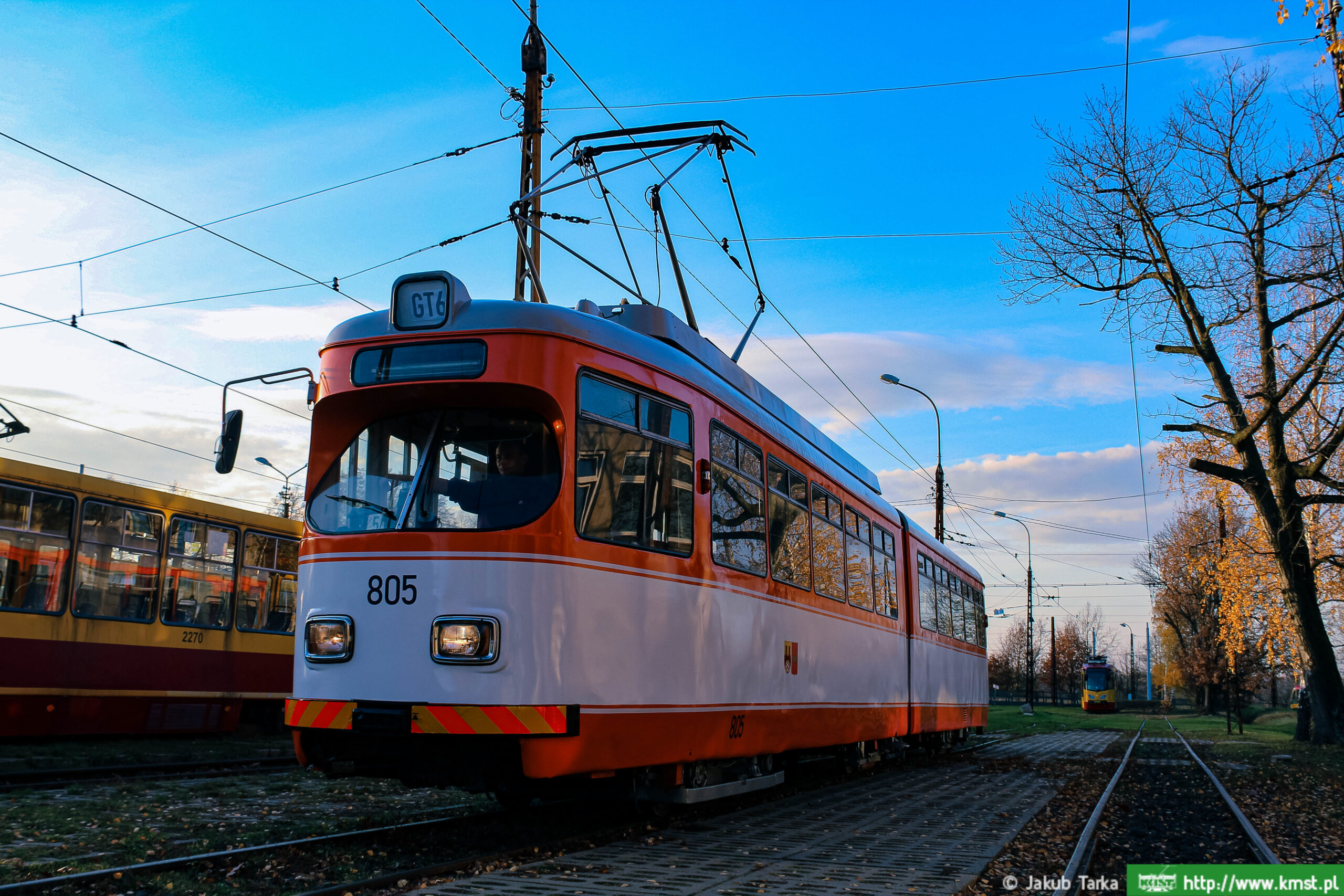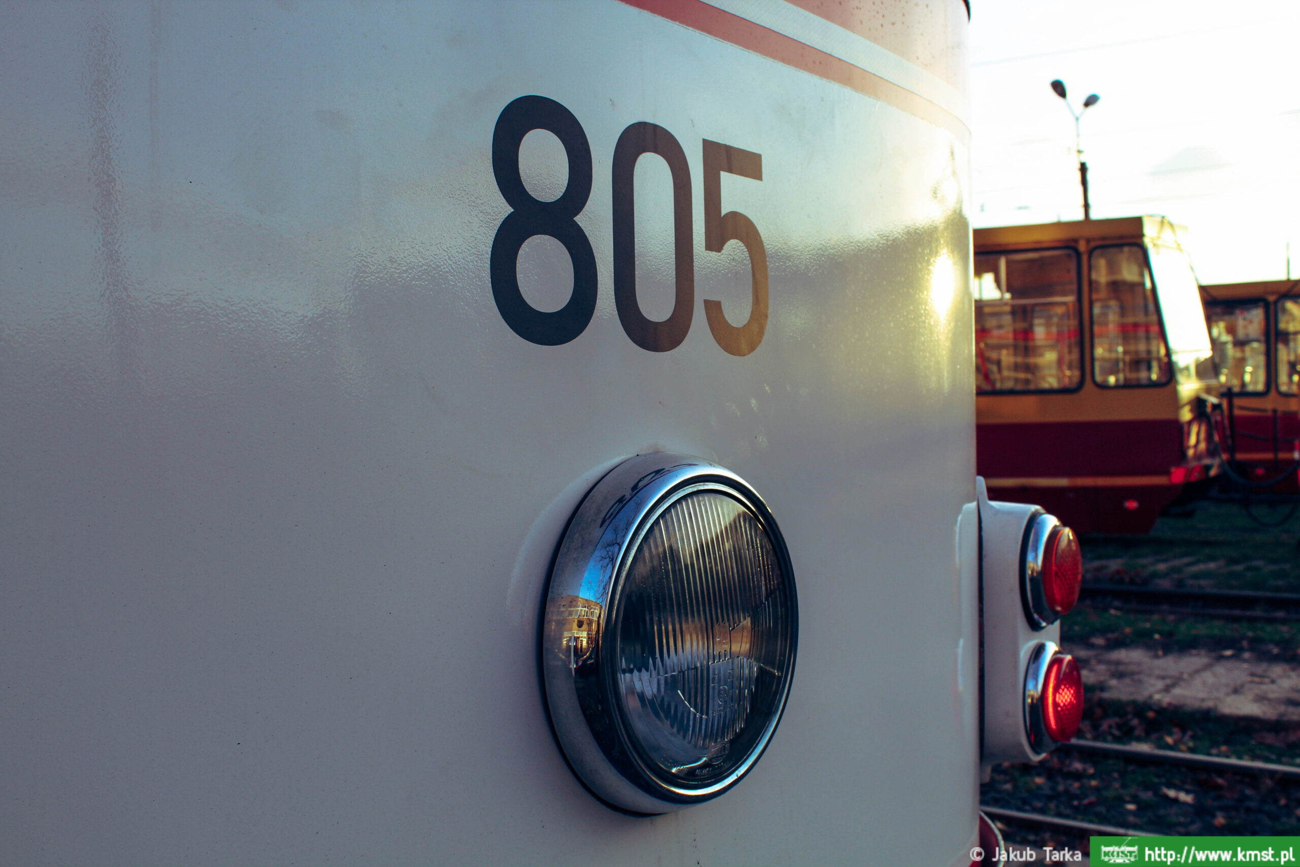 Nasz wagon został wyprodukowany w 1963 roku jako GT8 i otrzymał numer 255. Pięć lat później zmieniono go na 805. W 1983 roku tramwaj sprzedano do Innsbrucka. Tam nadano mu numer 38 i zamieniono go w GT6 poprzez usunięcie środkowego członu. W 2009 roku pojazd odkupiła Międzygminna Komunikacja Tramwajowa. Po likwidacji przewoźnika, tramwaj trafił do floty MPK Łódź. Ostatnią służbę odbył 2 lipca na linii 7A/9.