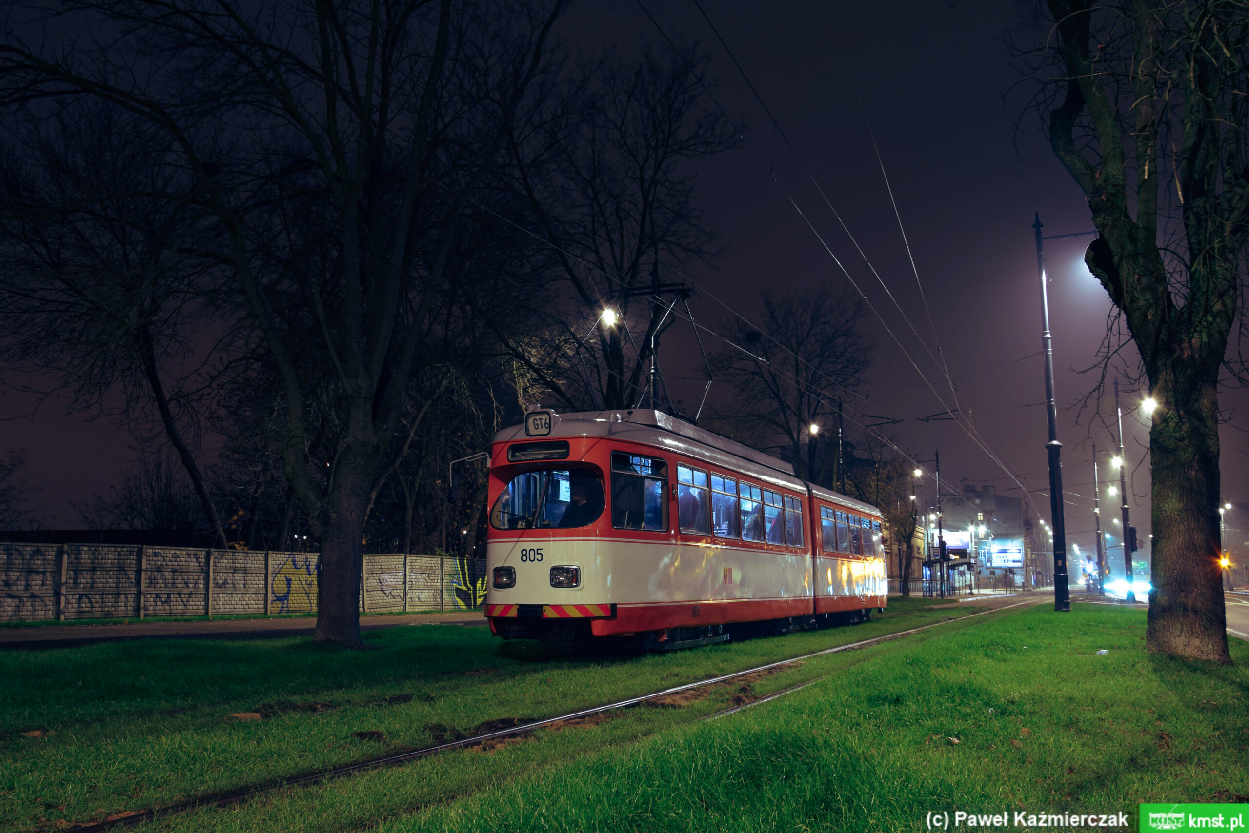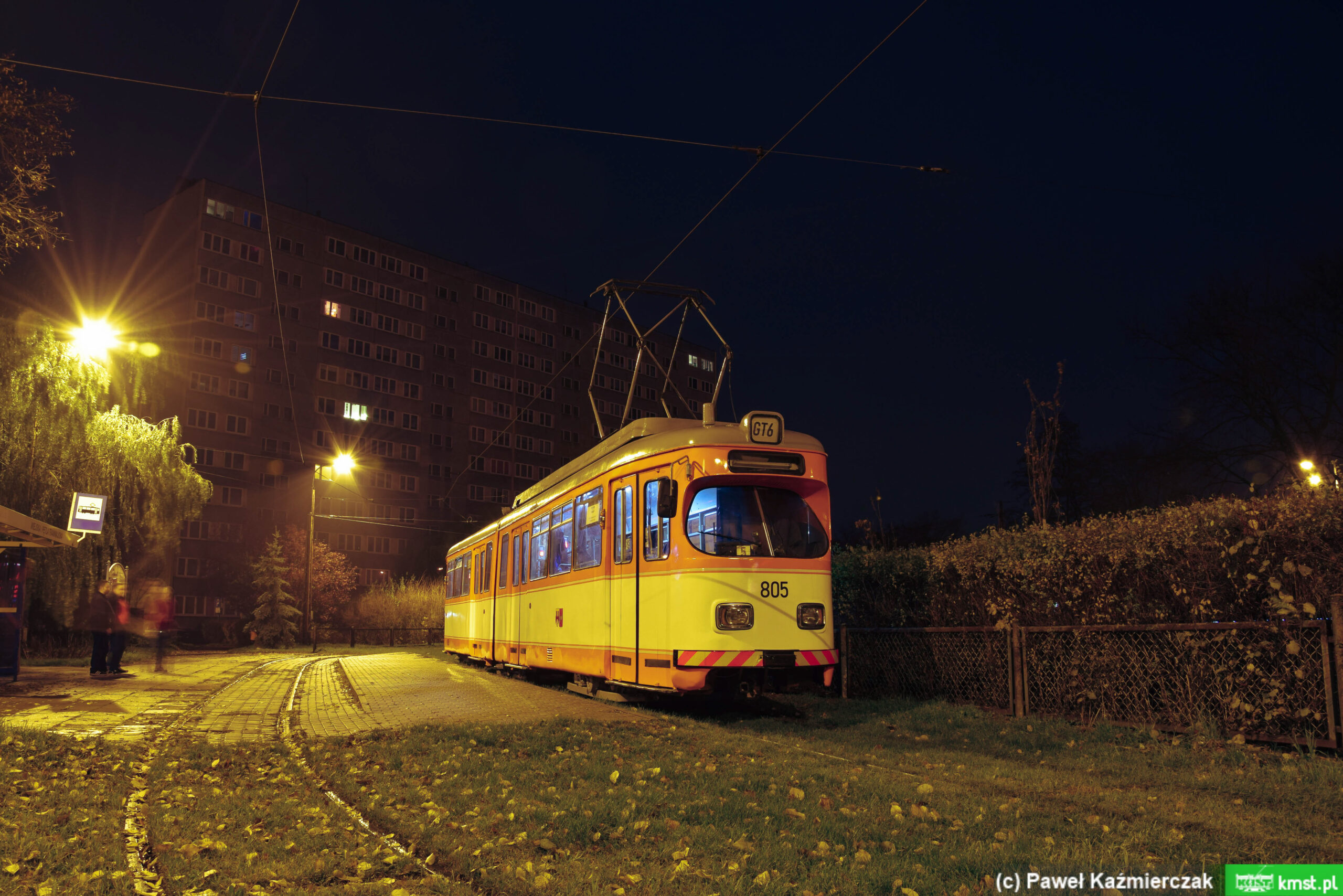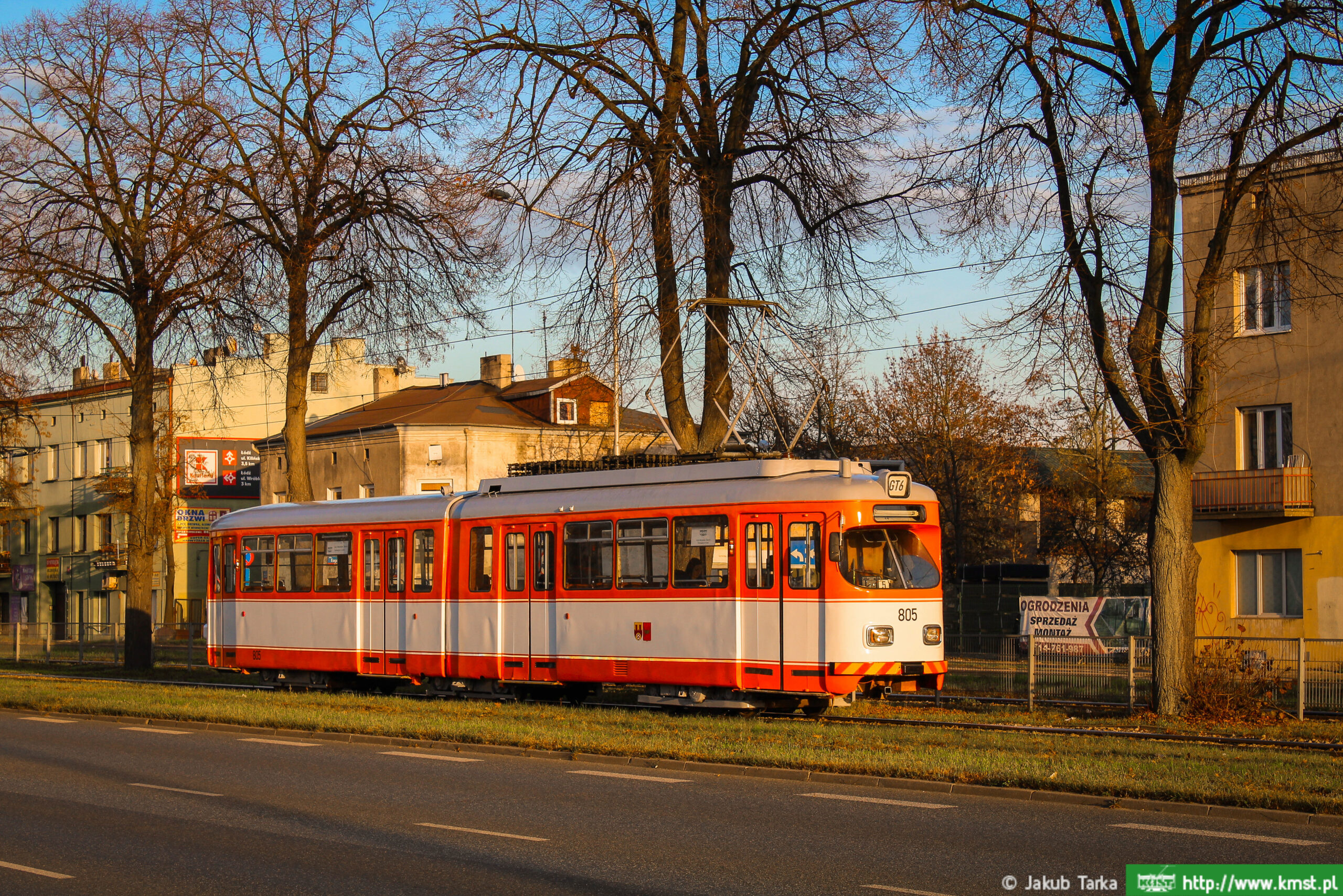 Nasz wagon został wyprodukowany w 1963 roku jako GT8 i otrzymał numer 255. Pięć lat później zmieniono go na 805. W 1983 roku tramwaj sprzedano do Innsbrucka. Tam nadano mu numer 38 i zamieniono go w GT6 poprzez usunięcie środkowego członu. W 2009 roku pojazd odkupiła Międzygminna Komunikacja Tramwajowa. Po likwidacji przewoźnika, tramwaj trafił do floty MPK Łódź. Ostatnią służbę odbył 2 lipca na linii 7A/9.