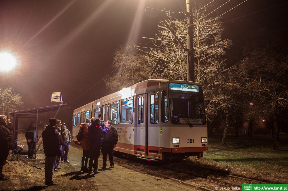 Część uczestników przejazdu zdecydowała się na podróż także ostatnim nocnym kursem linii 46, który był realizowany o godzinie 2.01 z placu Wolności. Dzięki uprzejmości MPK Łódź przejazd został obsłużony wagonem M6S nr 301, zamiast pojedynczym 805Na. Także i tym razem uczestnicy uczestniczyli we wspólnej fotografii na pętli w Ozorkowie.