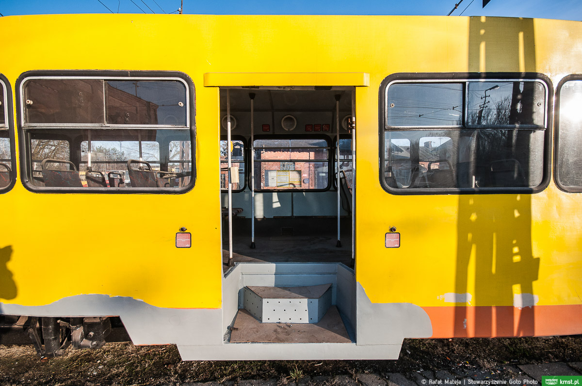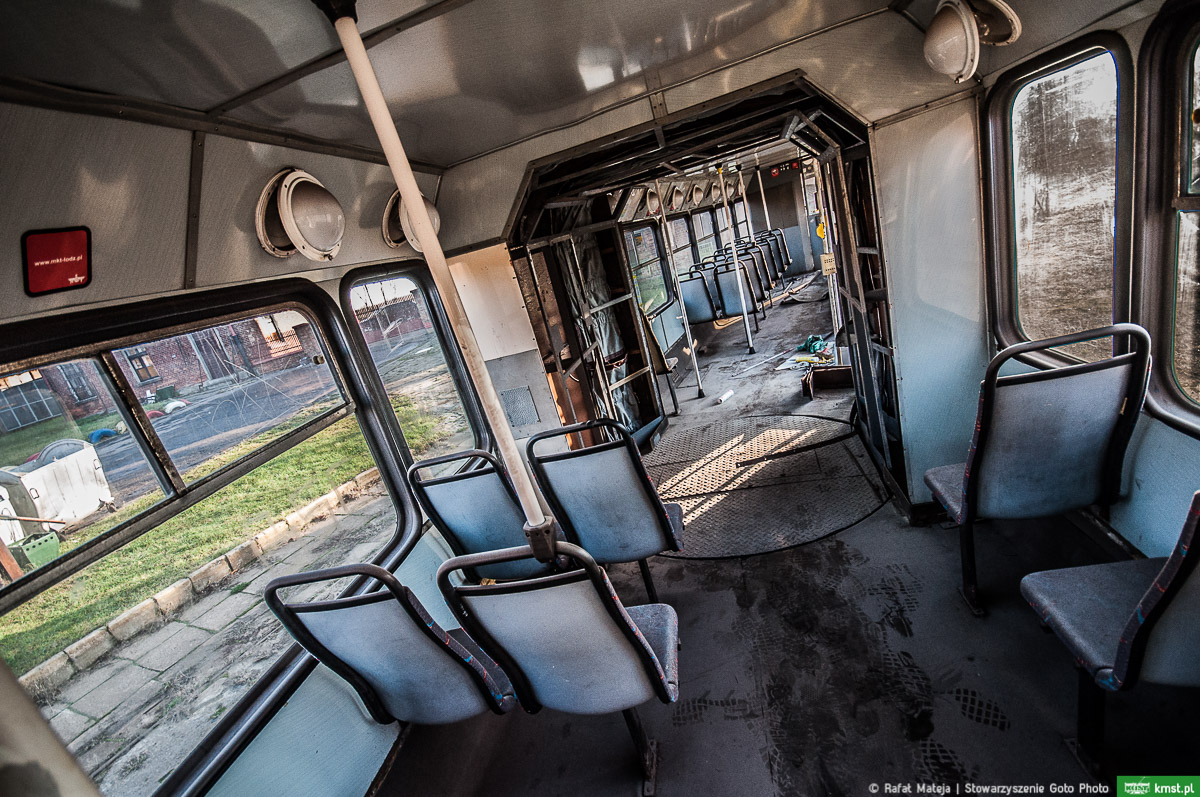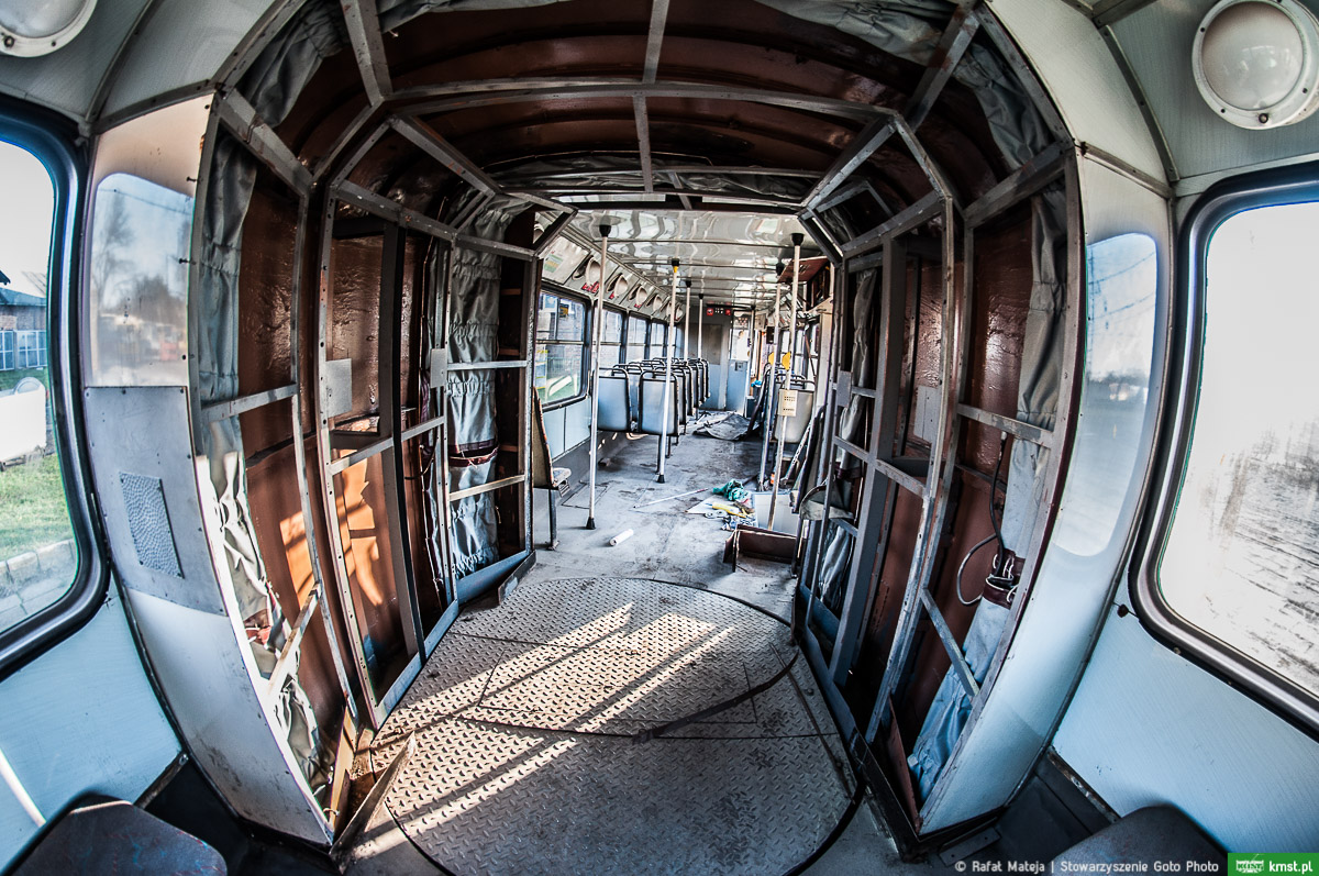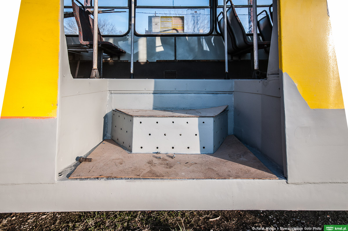 Obecnie prace skupiają się na naprawie drzwi. Poszczególne skrzydła zostały wyjęte, a skorodowane elementy wycięto. Naprawy dotyczą również poszycia zewnętrznego, gdzie wstawiono nowe fragmenty blachy. Trwa szpachlowanie ubytków. Do przeprowadzenia pozostają jeszcze drobne prace wewnątrz pojazdu.