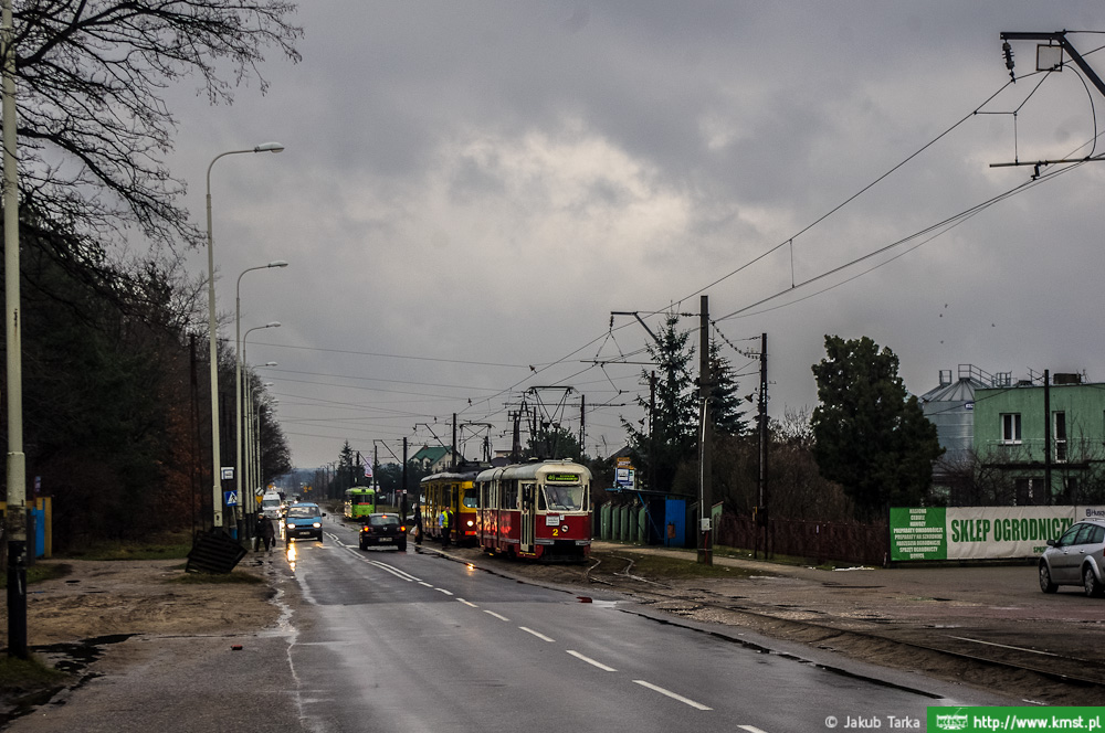 Następny postój zdjęciowy odbył się na ulicy Południowej, gdzie dwukierunkowy tor tramwajowy przebiega przy krawędzi jezdni. Oznacza to, że jadąc stronę krańcówki tramwaj przemieszcza się niejako pod prąd. To jedno z dwóch ostatnich takich miejsc na całej łódzkiej sieci tramwajowej. Ostatni fotostop odbył się na pętli Cegielniana. Tutaj zostało wykonane tradycyjne zdjęcie grupowe. Kilka minut po godzinie 14.00 tramwaj ruszył z powrotem do Łodzi. Ostatecznie przejazd zakończył się o godzinie 17.00.